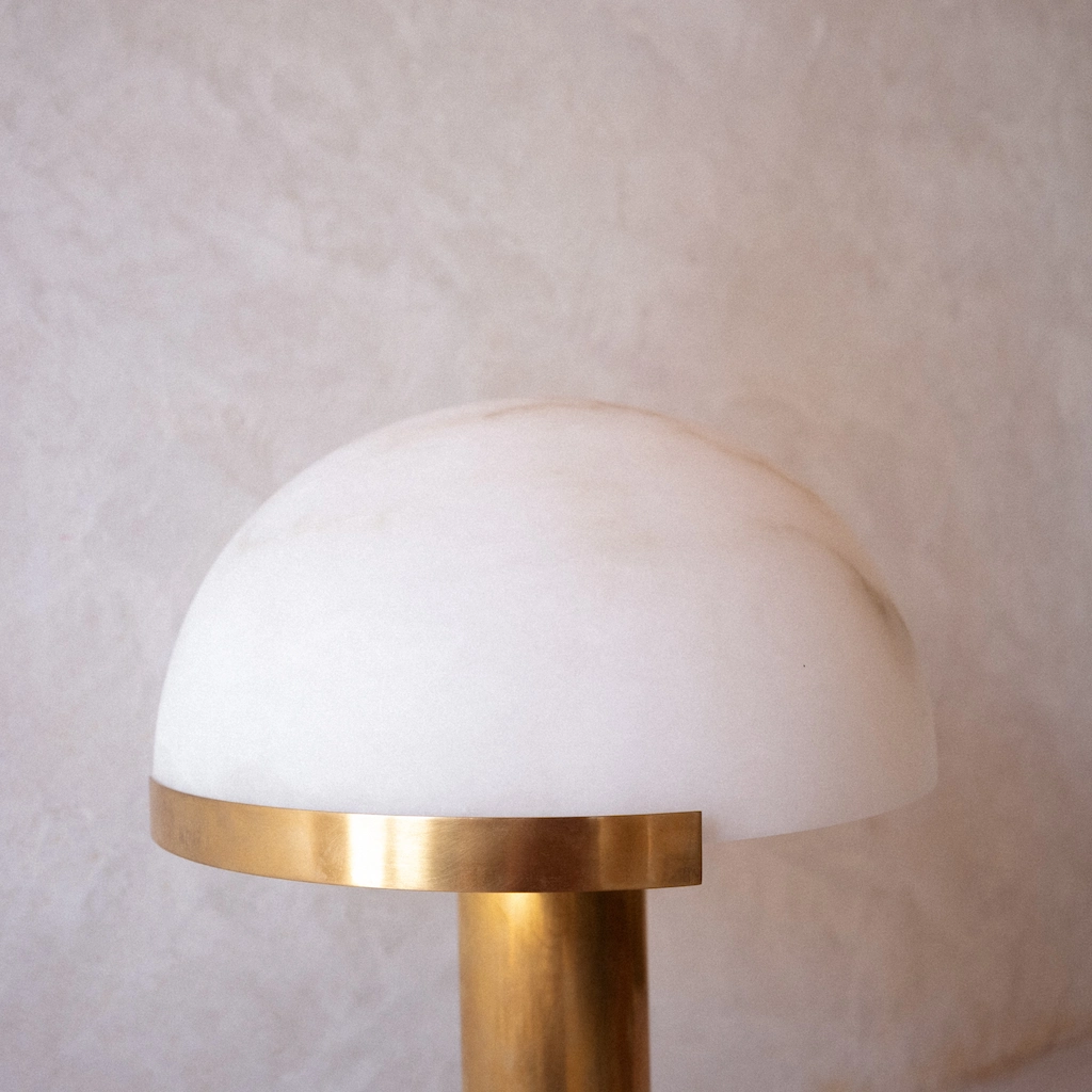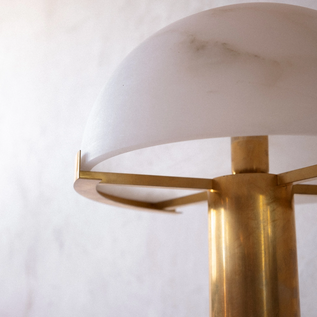 Drawing inspiration from the Art Deco movement, this lamp features clean lines, geometric shapes, and luxurious materials, creating a piece that is both modern and reminiscent of classic design. The brass base and marble accents complement each other perfectly, providing a sophisticated and stylish lighting solution for your home.
