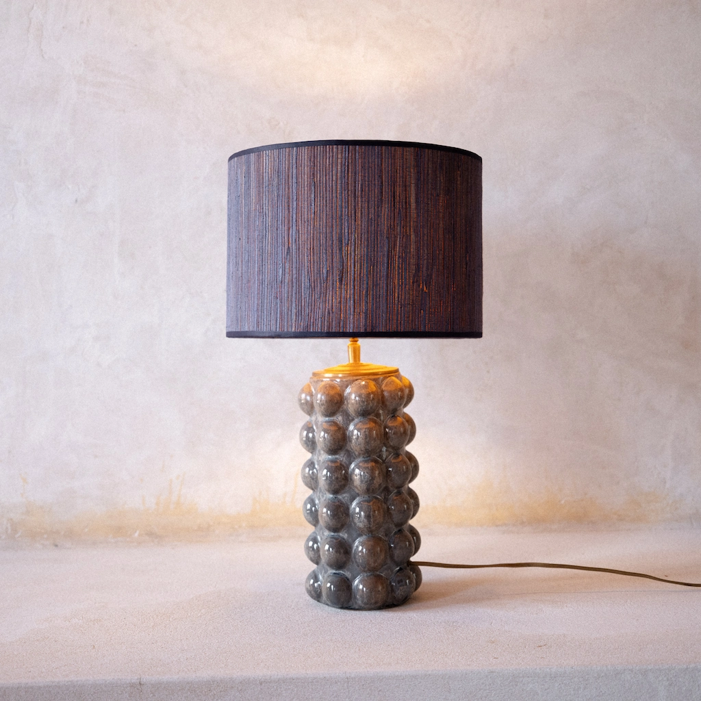 Crafted by two talented artisans in Haarlem, The Netherlands, our handmade lampshades are a testament to their creativity and craftsmanship. The lamp bases are unique vintage finds, carefully selected and repurposed by one of the owners to create distinctive and one-of-a-kind lamps. Each lampshade, made in their atelier, carries a unique story, with materials sourced from all around the world.