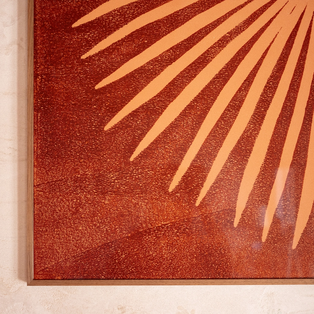 The frame is crafted from high-quality walnut wood by Larson & Juhl, renowned for their superior craftsmanship in the Netherlands. The frame features museum glass, which enhances the art’s visual impact by minimizing reflections, allowing the artwork to shine without distractions. You can hang the frame in any orientation that suits your space.