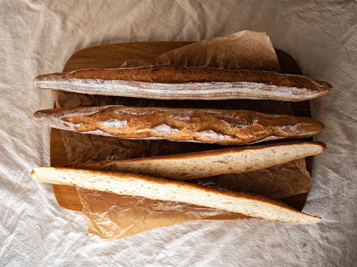 The Rustic Baguette is a nod to traditional baking made with organic plain flour sourdough. Its crusty exterior and soft interior make it the perfect companion to any meal.